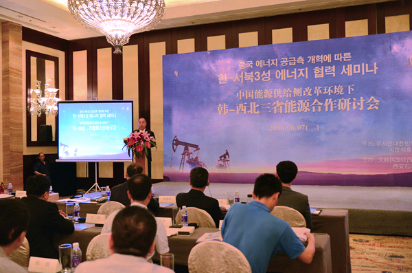 6月7日上午,我校與韓國駐西安領(lǐng)事館在西安香格里拉酒店共同主辦了“中國能源供給側(cè)改革環(huán)境下 韓—西北三省能源合作研討會”。我校校長屈展、副校長陳軍斌,韓國駐西安領(lǐng)事館總領(lǐng)事李康國、韓國礦物資源公社西安代表處首席代表孫榮甫、韓國駐華大使館商務(wù)官金賢哲,西安市人民政府外事僑務(wù)辦公室副主任王小鎮(zhèn)、陜西省教育廳科技處處長甘世平、陜西省教育廳國際合作與交流處副處長文通、陜西省能源局石油天然氣處處長黑喜生,華能陜西發(fā)電公司副總經(jīng)理顧可偉、陜西延長石油(集團(tuán))公司副總經(jīng)理羅萬明等出席會議。研討會由我校陳軍斌副校長主持,李康國總領(lǐng)事和屈展校長分別向中韓兩國嘉賓致辭。