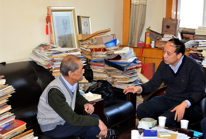 先生在西石大的生活一直為學(xué)校領(lǐng)導(dǎo)和眾多師生所牽掛。2015年12月22日上午,深居簡(jiǎn)出的陳忠實(shí)在西石大居所里迎來(lái)了一位客人——西安石油大學(xué)賽云秀書(shū)記來(lái)看望老人家了!賽書(shū)記詢(xún)問(wèn)了先生的生活起居和身體健康狀況,并送上了全校師生的問(wèn)候和祝福。兩人相談甚歡,共同回憶了多年相識(shí)相交的友誼。賽書(shū)記說(shuō),先生是國(guó)內(nèi)外知名的文學(xué)大家,在時(shí)代進(jìn)步、思想解放、信息暢通的今天,先生深厚的文化素養(yǎng)、開(kāi)闊的藝術(shù)視野、深邃的思想力度、高尚的人格修為和簡(jiǎn)樸的生活理念令人敬佩。賽書(shū)記代表學(xué)校感謝先生多年來(lái)為學(xué)校建設(shè)發(fā)展所做出的貢獻(xiàn),囑托有關(guān)部門(mén)切實(shí)為先生的生活提供全方位的服務(wù)。2016年4月28日,賽書(shū)記特地趕到醫(yī)院,再次看望彌留之際的陳忠實(shí)先生。2016年4月27日,我校與陜西省作協(xié)聯(lián)合召開(kāi)王心劍小說(shuō)《生民》研討會(huì),陳忠實(shí)先生還發(fā)來(lái)了賀信。