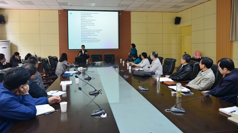 Ellen Switkes博士在報(bào)告中對(duì)美國加州的高等教育體系作了介紹,重點(diǎn)介紹了加州大學(xué)伯克利分校的成功經(jīng)驗(yàn),并指出了該校存在的問題和面臨的挑戰(zhàn)。滕霞博士重點(diǎn)介紹了加州大學(xué)伯克利分校協(xié)同創(chuàng)新的運(yùn)作模式、理念和成就。會(huì)議中,參會(huì)人員就機(jī)構(gòu)調(diào)整、人事考核、教授委員會(huì)設(shè)置等方面工作與兩位報(bào)告人進(jìn)行了積極互動(dòng)。
