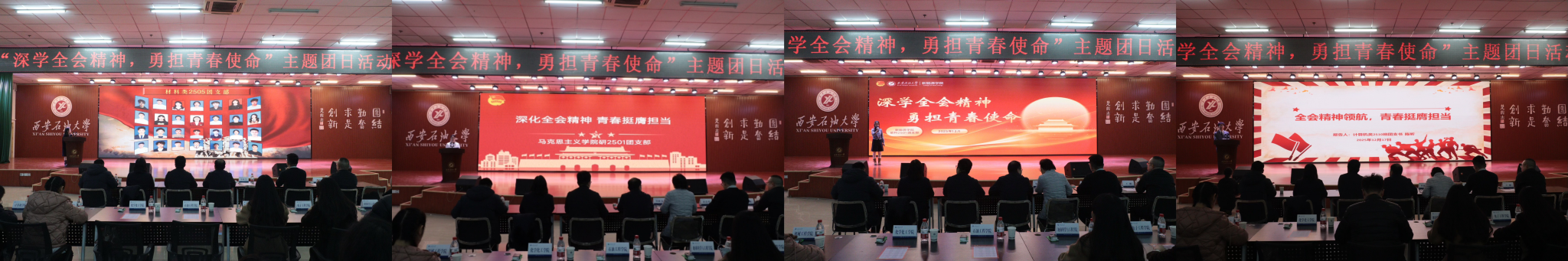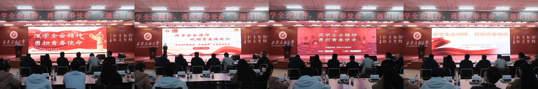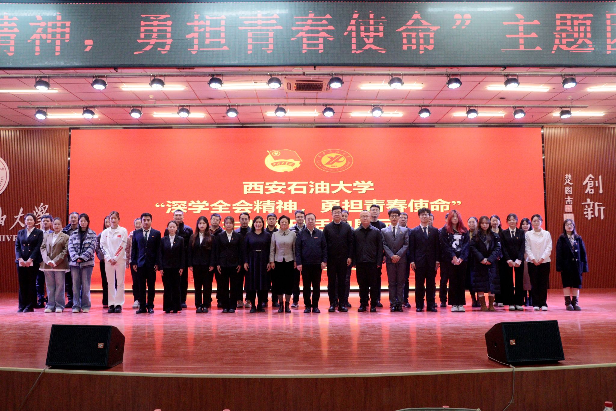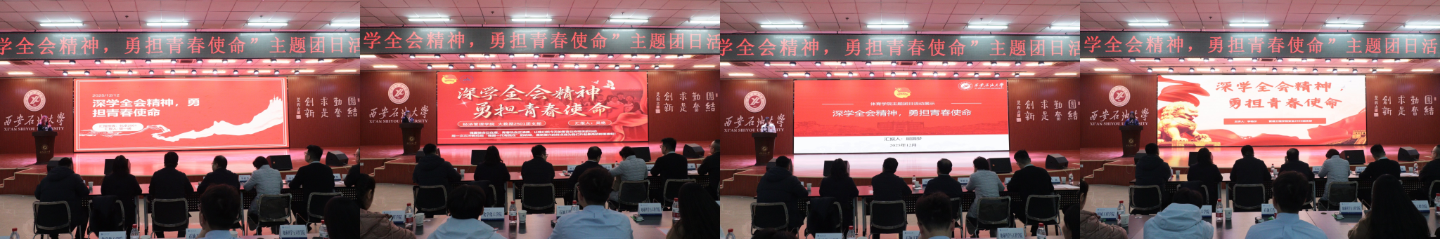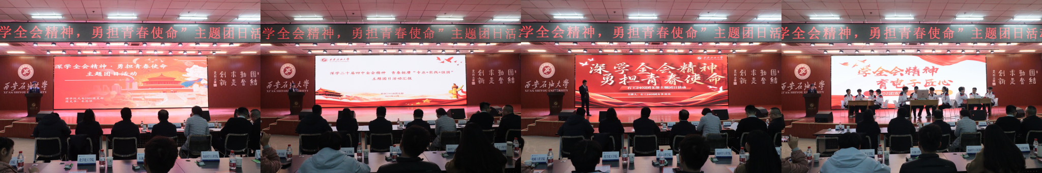 為引導(dǎo)團(tuán)員青年深刻領(lǐng)會(huì)黨的二十屆四中全會(huì)精神核心要義,集中展示我?;鶎訄F(tuán)組織風(fēng)采和主題團(tuán)日活動(dòng)實(shí)效,發(fā)揮先進(jìn)典型的示范引領(lǐng)作用,進(jìn)一步激發(fā)全校團(tuán)員青年的愛國(guó)熱情與奮斗精神,12月17日晚,學(xué)校在鄠邑校區(qū)騰輝大學(xué)生活動(dòng)中心舉辦“深學(xué)全會(huì)精神,勇?lián)啻菏姑敝黝}團(tuán)日活動(dòng)展示,副校長(zhǎng)種宇宏出席,相關(guān)職能處室負(fù)責(zé)人擔(dān)任評(píng)委,各院(系)團(tuán)委(團(tuán)總支)書記及300余名學(xué)生代表參加活動(dòng)。