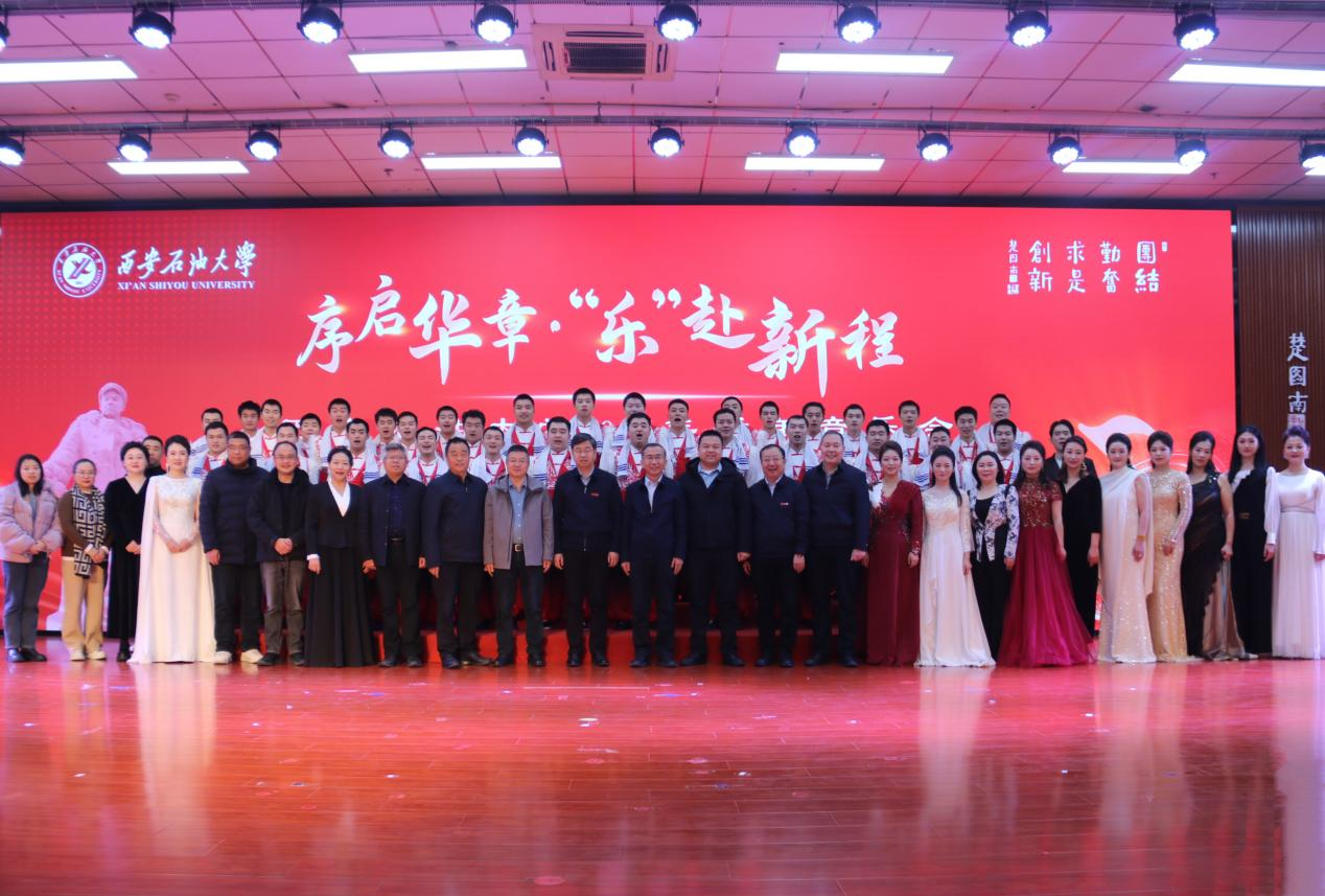 12月31日下午,序啟華章·“樂(lè)”赴新程—西安石油大學(xué)2026年新年音樂(lè)會(huì)在鄠邑校區(qū)騰輝大學(xué)生活動(dòng)中心舉辦。校領(lǐng)導(dǎo)王進(jìn)富、張木、程永清、張驍勇、趙健、種宇宏,校友代表,離退休教職工代表,高層次人才代表,民主黨派、無(wú)黨派人士代表,學(xué)校各單位處科級(jí)干部代表及師生代表等500余人齊聚一堂,共迎新年。