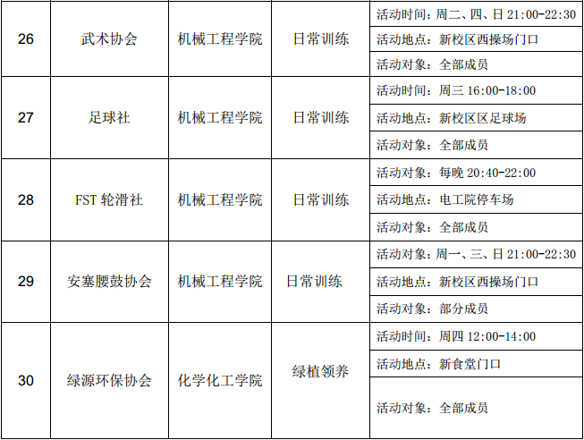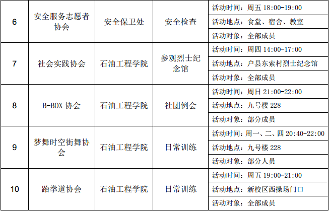 西安石油大學(xué)2016—2017學(xué)年第二學(xué)期第六周社團(tuán)活動一覽表