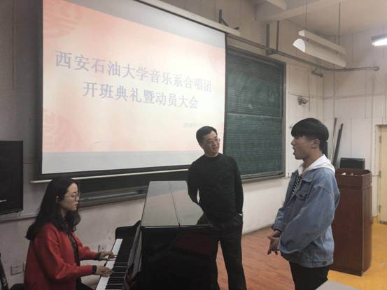 隨后,張偉副書(shū)記給合唱團(tuán)全體同學(xué)進(jìn)行了動(dòng)員,張副書(shū)記提到合唱團(tuán)每周固定進(jìn)行兩次培訓(xùn),希望同學(xué)們能夠借本次動(dòng)員大會(huì),在為期十周的培訓(xùn)學(xué)習(xí)中堅(jiān)定信心,刻苦訓(xùn)練,將專業(yè)學(xué)習(xí)與實(shí)踐訓(xùn)練相結(jié)合,認(rèn)真參加每一次團(tuán)訓(xùn),取得良好的實(shí)踐育人成果。在以后的工作崗位上,努力為國(guó)家的音樂(lè)文化教育事業(yè)服務(wù),為區(qū)域文化事業(yè)發(fā)展服務(wù)。