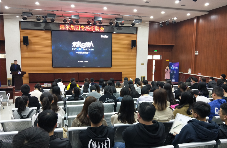 會上,陳總從“海爾時代、物聯(lián)網(wǎng)時代、雙創(chuàng)時代、你的時代”四個方面介紹了海爾集團的情況,并就畢業(yè)生關心的薪酬待遇、職業(yè)發(fā)展、培訓分配等內(nèi)容做了詳細說明。隨后,現(xiàn)場提問環(huán)節(jié)中,陳總耐心的一一解答畢業(yè)生提出的問題。整場招聘會氣氛熱烈,畢業(yè)生積極參與,投遞電子簡歷200多份。