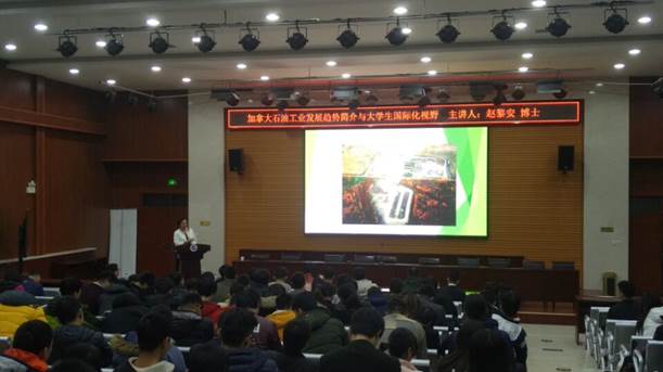1月3日晚7:00,在鄠邑校區(qū)人文經(jīng)管樓118報(bào)告廳,化學(xué)化工學(xué)院邀請客座教授趙黎安博士做了題為“加拿大石油工業(yè)發(fā)展趨勢簡介與大學(xué)生國際化視野”的報(bào)告?;瘜W(xué)化工學(xué)院黨委副書記劉小波主持報(bào)告會(huì),化學(xué)化工學(xué)院院長王文珍及師生共計(jì)三百余人聆聽了報(bào)告。