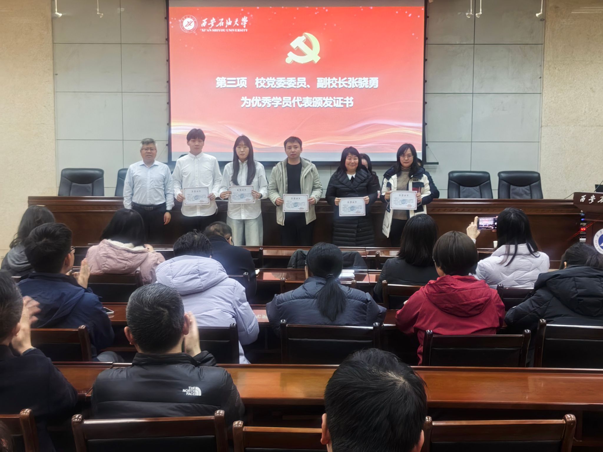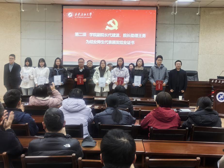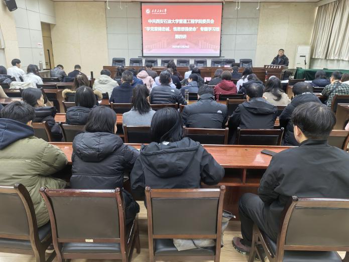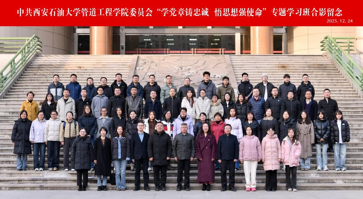 2025年12月24日下午,管道工程學(xué)院黨委在雁塔校區(qū)西階第三會議室開展“學(xué)黨章鑄忠誠,悟思想強使命”專題學(xué)習(xí)班第四講暨結(jié)業(yè)儀式。校黨委委員、副校長張驍勇出席并作第四講專題報告,學(xué)院班子全體成員、全體教工黨員、研究生黨員代表70人參加儀式。儀式由學(xué)院黨委副書記高亮主持。