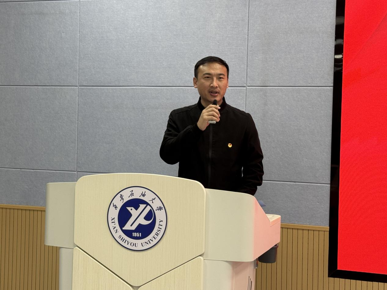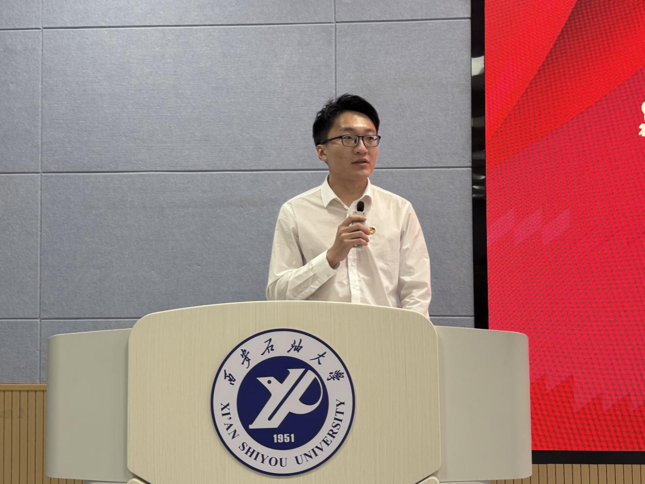校研究生會執(zhí)行主席張振陸致辭,他代表校研究生會向大會隆重召開表示最熱烈的祝賀,希望學院研究生會與校研究生會攜手并肩、同心同行,為學校學生組織高質量發(fā)展添磚加瓦。