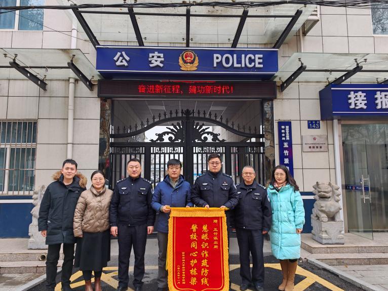 1月4日,經(jīng)濟管理學院黨委副書記趙紀飛、學生工作辦公室副主任張碩、輔導員劉清、王中立專程前往五竹派出所,將一面印有“慧眼識詐筑防線警校同心護棟梁”的錦旗鄭重送到五竹派出所副所長曹聰手中,以此衷心感謝派出所長期以來在校園反詐宣傳、學生安全守護等工作中的辛勤付出與有力保障。