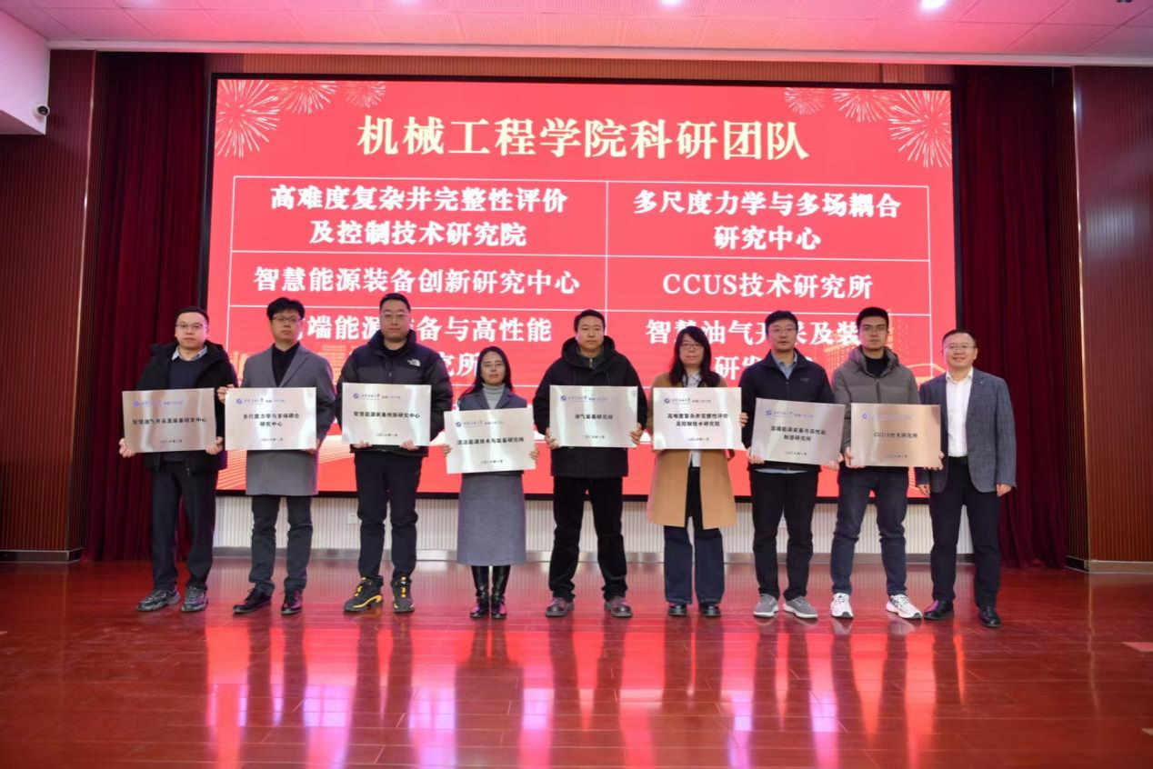 為推動(dòng)學(xué)科交叉與有組織科研,學(xué)院成立了高難度復(fù)雜井完整性評(píng)價(jià)及控制技術(shù)研究院、多尺度力學(xué)與多場(chǎng)耦合研究中心、智慧能源裝備創(chuàng)新研究中心、智慧油氣開(kāi)采及裝備研發(fā)中心、CCUS技術(shù)研究所、高端能源裝備與高性能制造研究所、清潔能源技術(shù)與裝備研究所、油氣裝備研究所,學(xué)院院長(zhǎng)劉少胡為8個(gè)研究機(jī)構(gòu)授牌。
