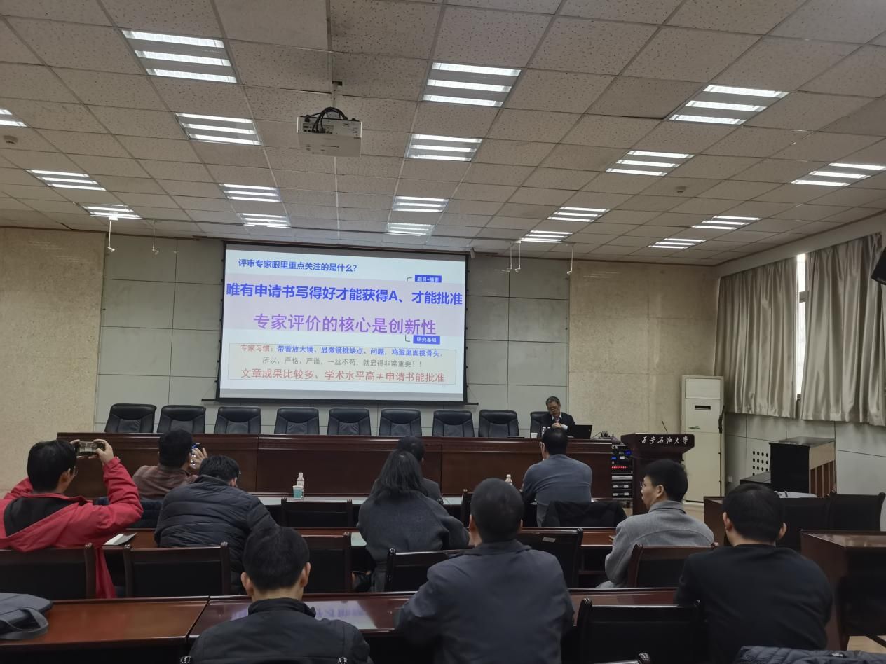 上午,在雁塔校區(qū)第三會議室,王文龍研究員作“國家自然科學(xué)基金申請書評審要點與撰寫技巧”專題報告。他從評審邏輯出發(fā),明確了評審專家關(guān)注的三大核心要素:申請書的立項依據(jù)、創(chuàng)新性與技術(shù)路線可行性,申請人的學(xué)術(shù)水平,以及研究依托的實驗平臺與儀器支撐,并著重強(qiáng)調(diào)科學(xué)價值與創(chuàng)新性是項目立項的關(guān)鍵。針對2026年基金申報在立項依據(jù)、研究內(nèi)容、研究基礎(chǔ)三大板塊的重大變化,他結(jié)合典型案例,幫助參會者精準(zhǔn)把握新要求。在撰寫技巧分享中,對于各個模塊,提出“題目寫小、摘要寫好、內(nèi)容要深、技術(shù)要巧”等核心準(zhǔn)則,并針對不同類型項目給出精準(zhǔn)指導(dǎo):青年基金需“小而精、創(chuàng)新明顯”,面上與地區(qū)基金要“深刻創(chuàng)新、基礎(chǔ)扎實”,重點項目則“貴在學(xué)術(shù)影響”,讓參會者清晰掌握不同項目的撰寫側(cè)重點。