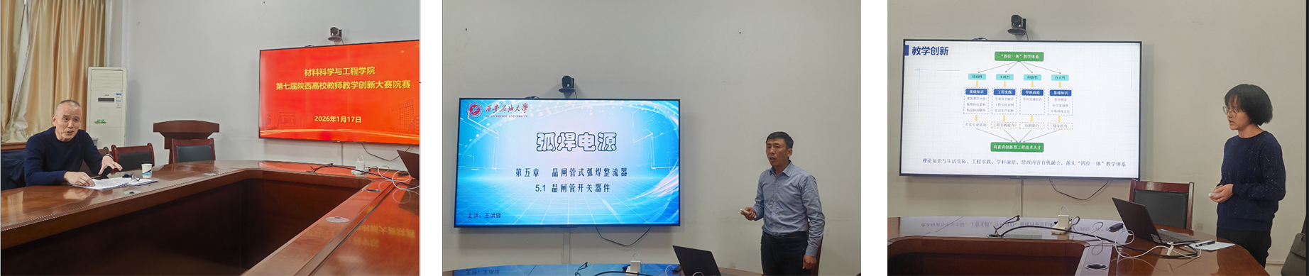 為深入貫徹新時(shí)代全國(guó)高等學(xué)校本科教育工作會(huì)議精神,扎實(shí)推進(jìn)課堂教學(xué)革命,全面提升人才培養(yǎng)質(zhì)量,做好第七屆陜西高校教師教學(xué)創(chuàng)新大賽培育工作。1月17日,材料科學(xué)與工程學(xué)院在雁塔校區(qū)四號(hào)實(shí)驗(yàn)樓311、312會(huì)議室成功舉辦院內(nèi)選拔賽。本次大賽以“激發(fā)教學(xué)創(chuàng)新活力,探索新工科育人模式”為核心,旨在搭建教師教學(xué)交流平臺(tái),推動(dòng)教學(xué)理念與方法革新,切實(shí)提升育人實(shí)效。學(xué)院黨委書記耿嶺、院長(zhǎng)劉德學(xué)全程出席并指導(dǎo)活動(dòng)。
