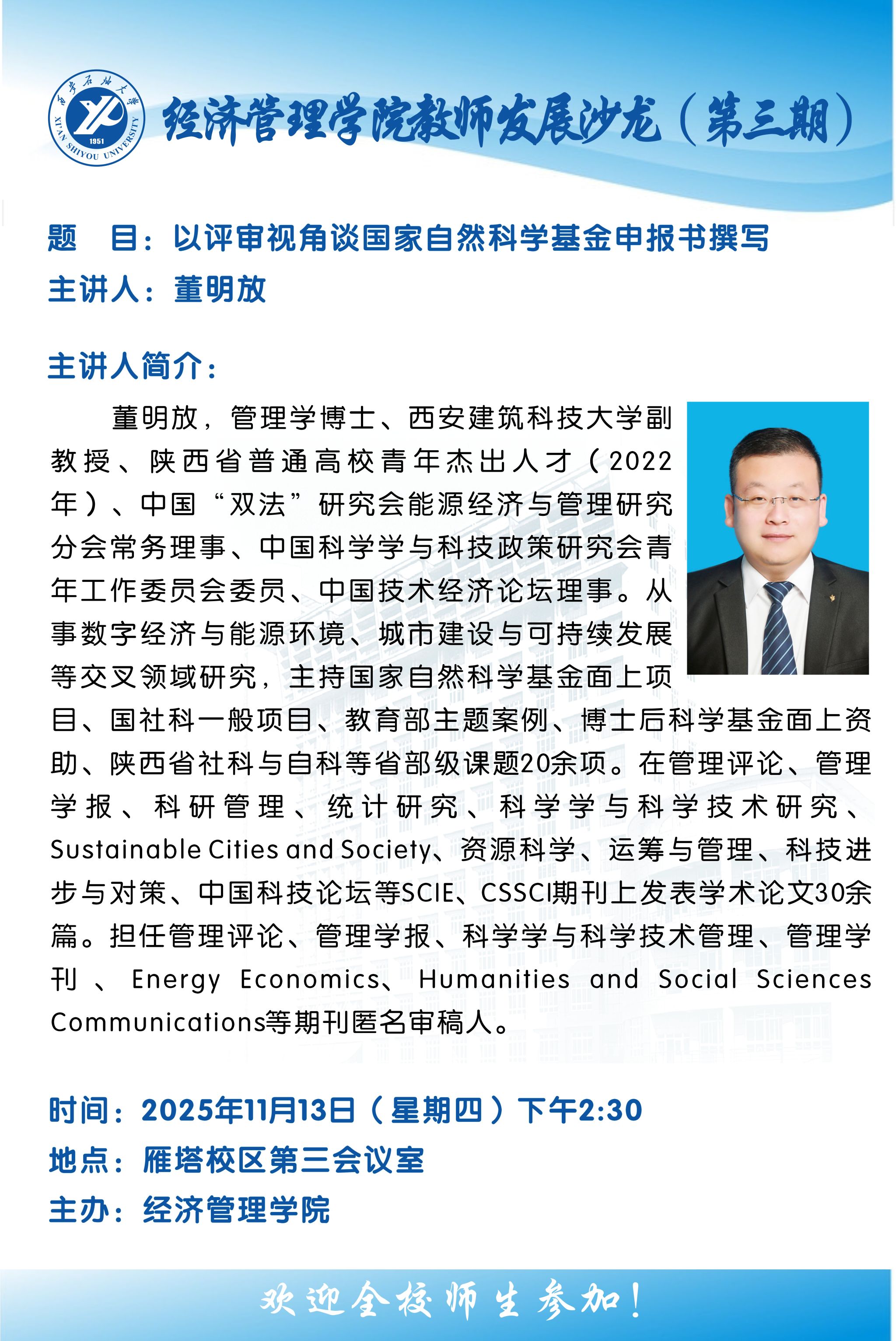 報(bào)告地點(diǎn):雁塔校區(qū)會(huì)議中心第一會(huì)議室