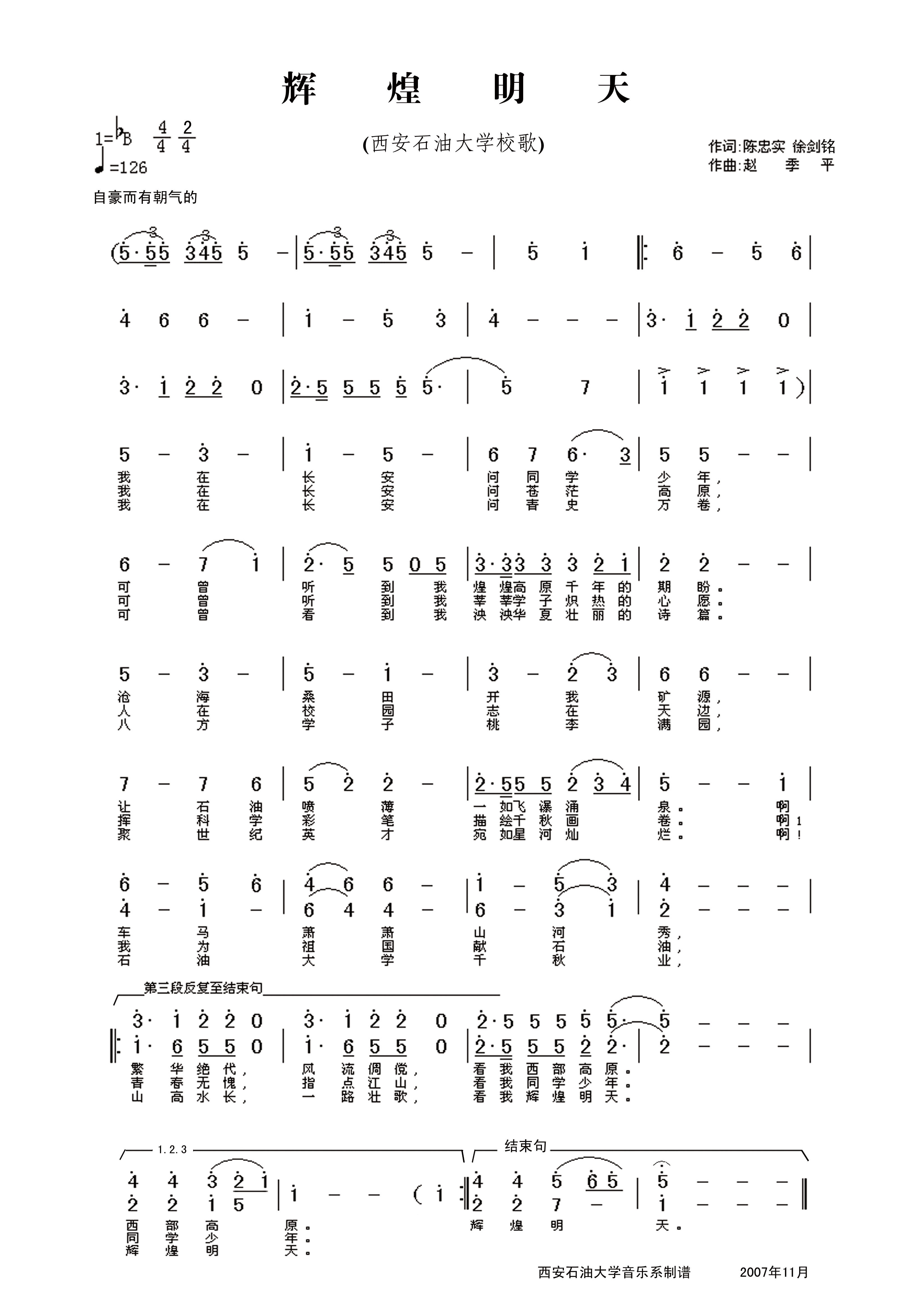 我校校歌具有十分鮮明的文化特色和石油特色,是我校極其寶貴的精神財富。校歌瑯瑯上口,含義深遠,氣勢磅礴,魅力無窮,既振奮人心、鼓舞斗志,又催人向上、奮發(fā)圖強。從注重自身歷史資源開發(fā)的角度來看,無疑擴大和強化了學校在社會和校友之間的認同感。增加了學校的向心力和凝聚力;從培養(yǎng)人才的視角看,一種求知的渴望、愛校愛國的責任和情感油然而生,感受到對青年學生和求知者的期望和召喚,期盼我們能夠以知識和才智振興中華。歌中抑揚頓挫的語調,特殊的內涵,一種奮斗的豪情在心中澎湃激蕩,唱響校歌,是凝聚力量,加快學校建設步伐的需要,也是擴大學校影響,提高學校聲譽的需要。把校歌唱響,讓聲音穿越蒼穹,引向世界,創(chuàng)造西安石油大學更加燦爛輝煌的明天!